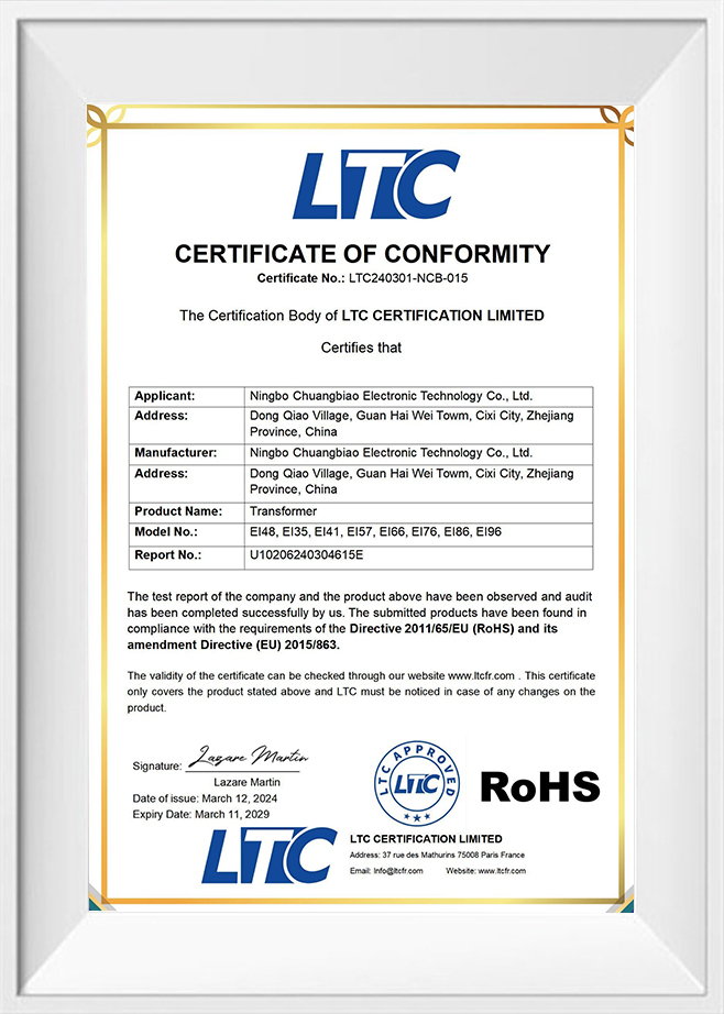 La technologie électronique de Ningbo Chuangbiao est un fabricant professionnel de toutes sortes de transformateurs électroniques. L'entreprise a été fondée en 2010.